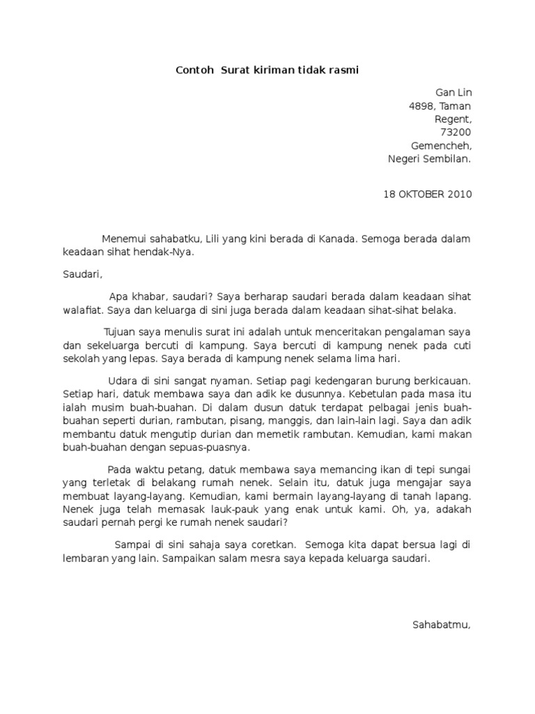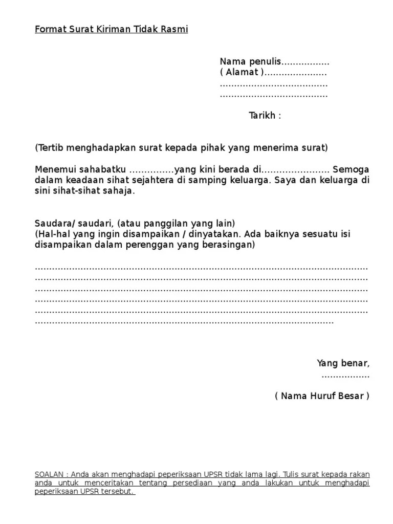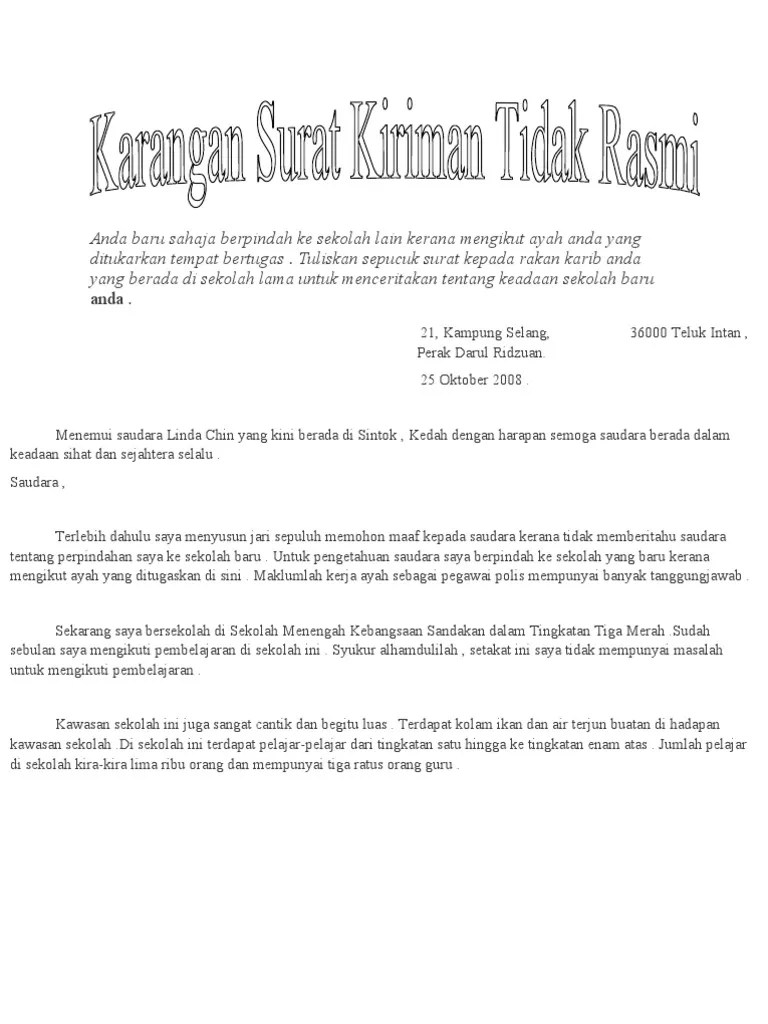 Surat Tidak Rasmi Bahasa English from cdn.statically.io Jika kamu ingin membuat surat resmi untuk keperluan tertentu, berikut ini adalah beberapa contoh surat resmi yang bisa kamu jadikan sebagai panduan. Contoh surat undangan resmi : Surat resmi adalah surat yang ditulis dengan bahasa resmi, memiliki kepala surat, dan untuk keperluan resmi (kedinasan). Pada dasarnya surat dibagi menjadi dua jenis yakni surat surat tidak resmi saat ini juga masih sering digunakan untuk bertukar kabar, tapi sudah tak sebuming terdahulu. Dalam berbagai contoh surat resmi perusahaan, anda akan menemukan kalau penulisannya memiliki pola tertentu. Ruang ava sma negeri 9 yogyakarta. Menulis surat apalagi yang tergolong resmi terkadang bisa tak hanya itu, contoh tersebut biasanya akan dilengkapi dengan berbagai penjelasan lengkapnya. Contoh surat resmi yang dibuat oleh individu adalah surat lamaran kerja, atau surat pengunduran diri dimana cara penulisan surat tersebut menggunakan format surat resmi yang berlaku dan bahasa yang digunakan merupakan bahasa indonesia yang baik dan benar.